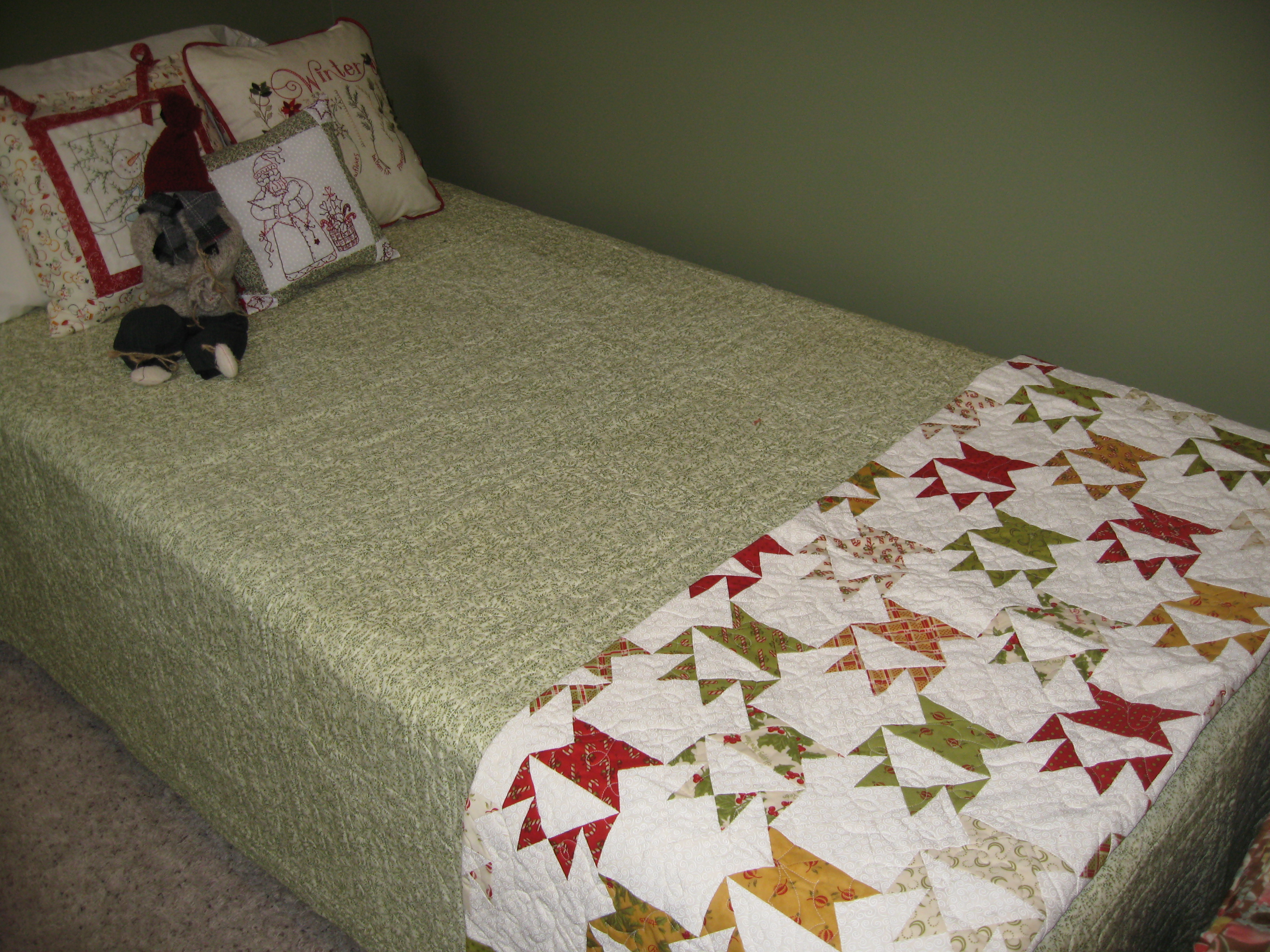 Here’s some more ways I use my Christmas quilts…Folded at the end of the guest bed
