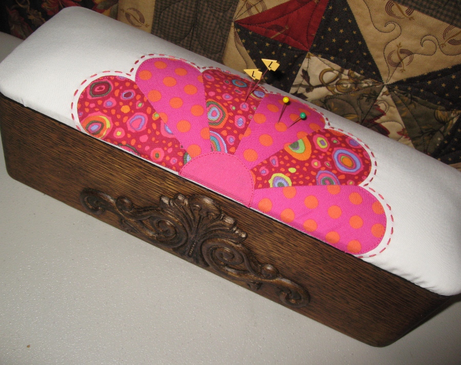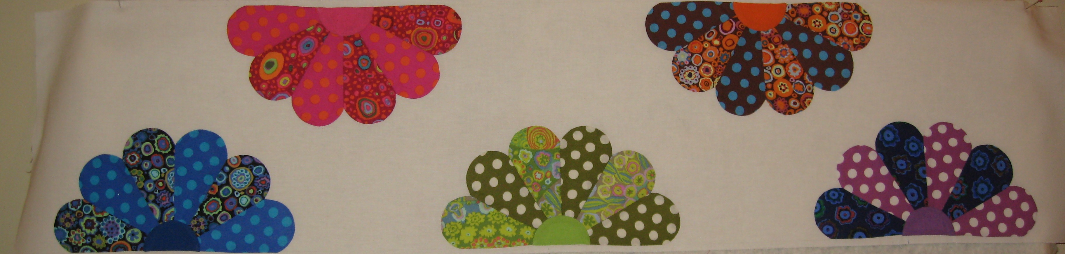 This project was a lot of fun & would make a really fun class for a quilt shop. We used the Easy Dresden tool instead of the paper template. We had it completed and the leaves appliqued in just one sewing day!