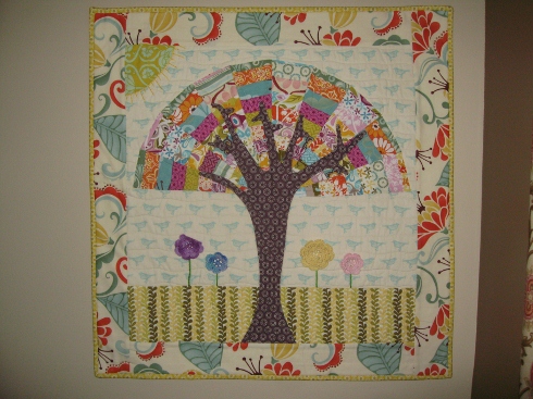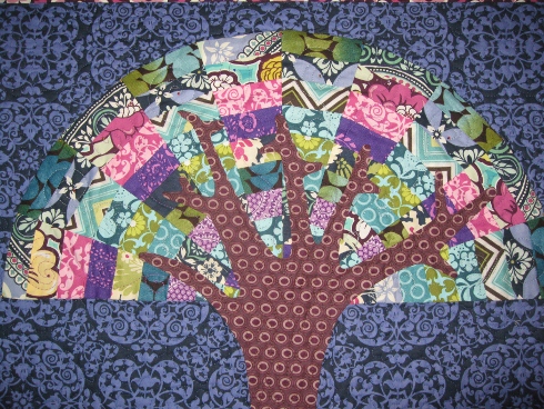 Most of my fabrics were Central Park & Fandango by Kate Spain. I made the tree leaves from just a charm pack. And trees can’t grow without sunshine, right?