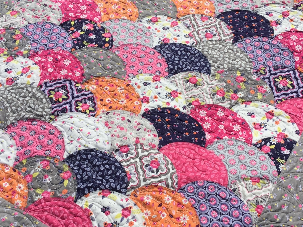 For all of you modern quilters out there who love a quick fix and instant satisfaction, this quilt assembles fast with a quick cutting method and machine appliqued clamshells.