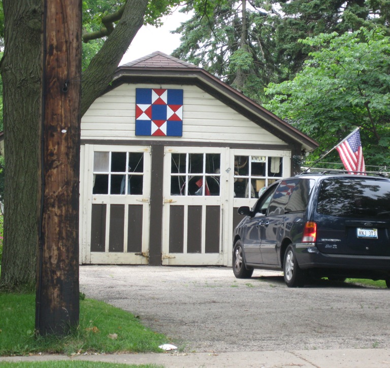 The Northern Illinois Quilt Fest runs July through September and during this time some of the local barns and gardens are either featuring a painted quilt block or a quilt block garden, or both. Paige and I decided to hit the road yesterday for a little break from sewing and check out the ones that were being displayed locally in Crystal Lake.