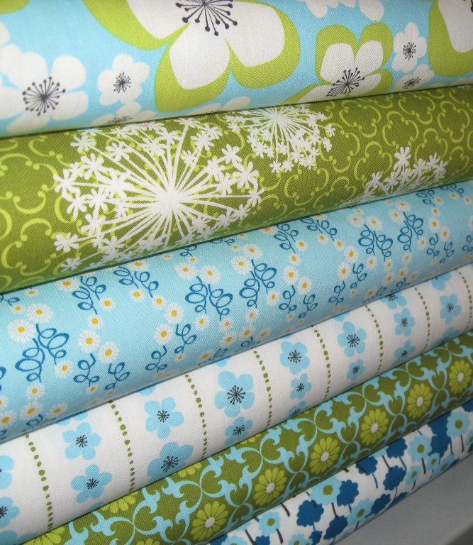 More Pick A Bunch from Kaufman came in this week. We were missing the olives and aquas. These fabrics make me SMILE:) Super soft organic cottons from Nancy Mims.