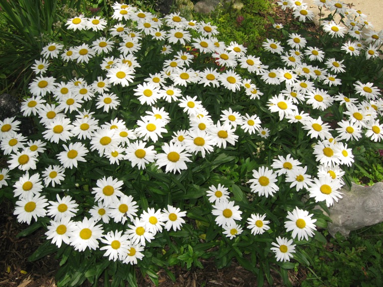 Daisies and I can never remember the name of the hot pink ones… Coreopsis maybe?