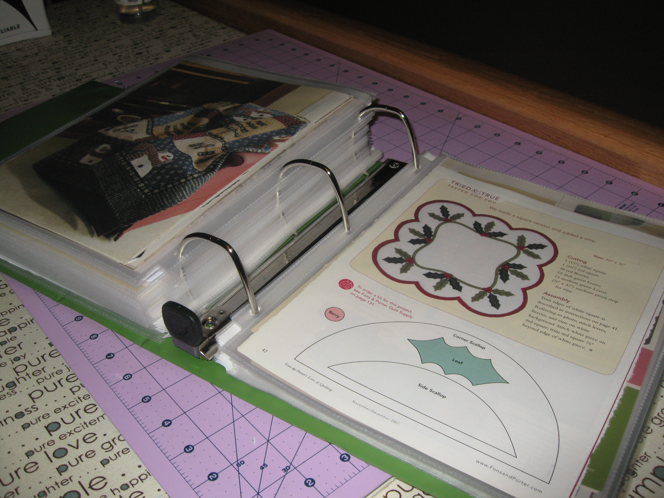 I bought a big binder and added these clear pocket liners to keep track of all my loose papers and patterns.