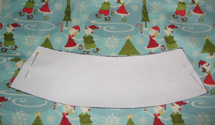 Place your pattern on top and position it on the fabric at a diagonal. Pin. Cut the fabric and batting using your pattern as the guide.