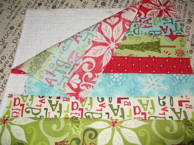 Press all your seams in one direction. Layer your batting and then your pieced fabric with right side up.