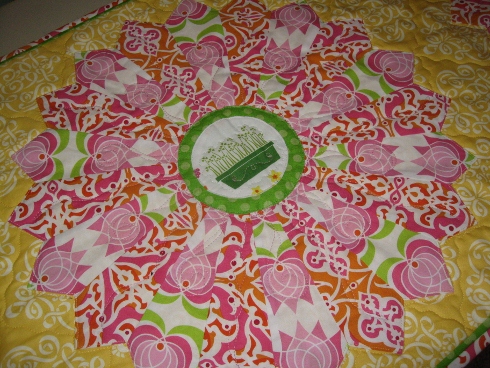 We fussy cut the Flower Shop fabric for the dresden centers.