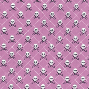 Up 1st is Knitty Gritty from Michael Miller. I love this with the scissors under the skulls. The other piece to this line has knitting needles crossed behind the skulls.
