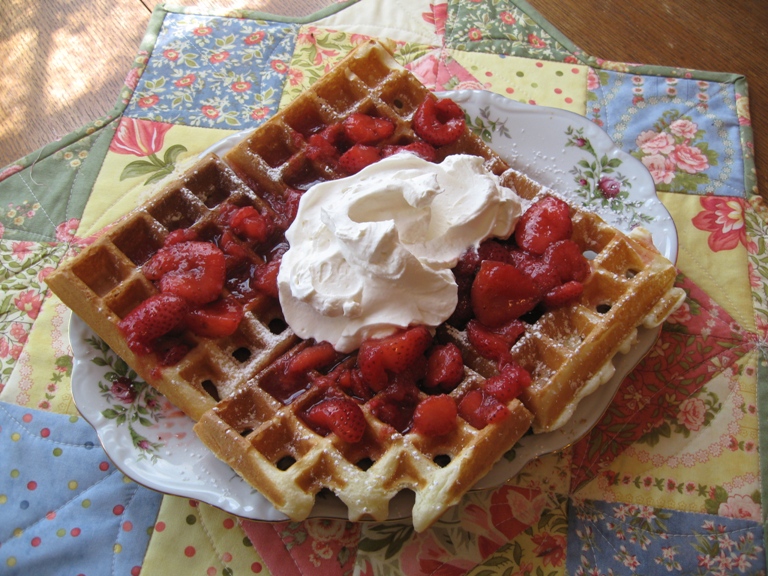 It’s our little reality break. So, we started our little break at noon with some strawberry waffles and homemade whipped cream.
