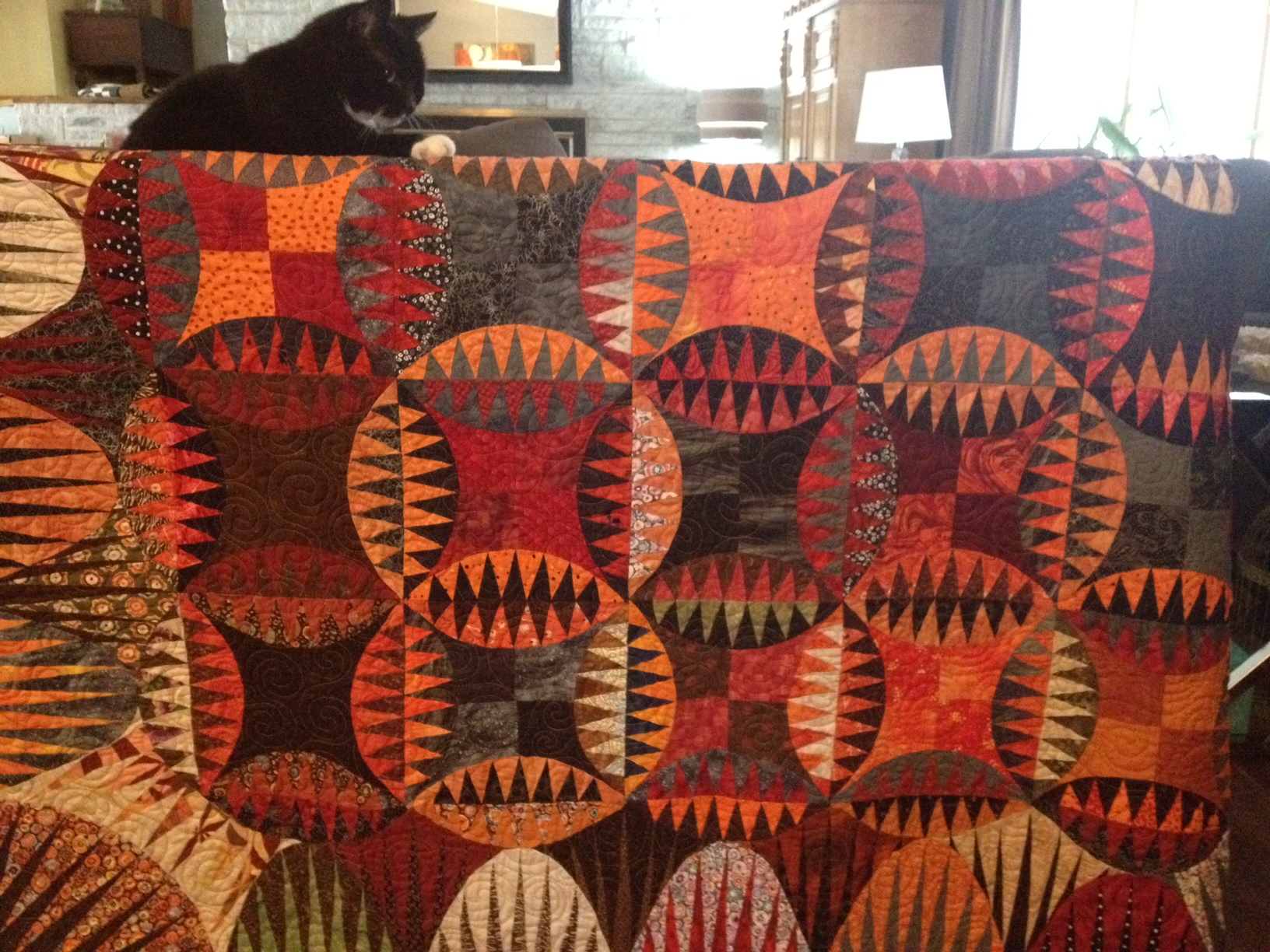 This is a quilt Pattie had over a sofa in her living room. Stunning comes to mind. I think the kitty liked it too!
