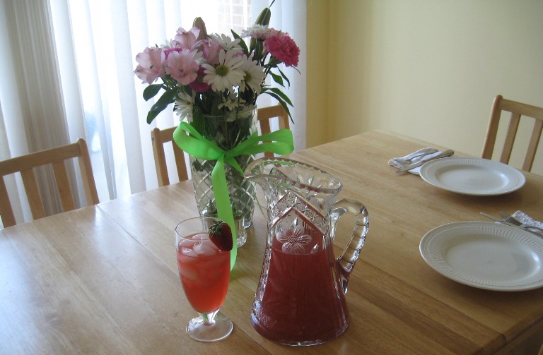 Last Sunday, neighbor Susan cooked dinner. She makes a really good chicken pot pie. We had some pink lemonade to go along with it.
