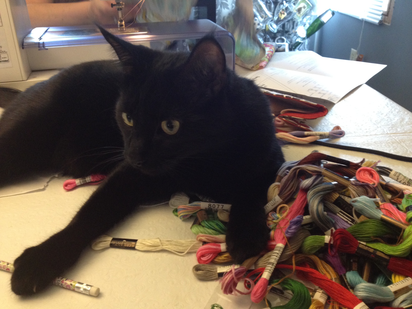 Pattie has four kitties. But Pete was our favorite. He insisted on helping us out at every turn. He happened to love the Cosmo floss. I’m pretty sure he thought I had brought it just for him:)