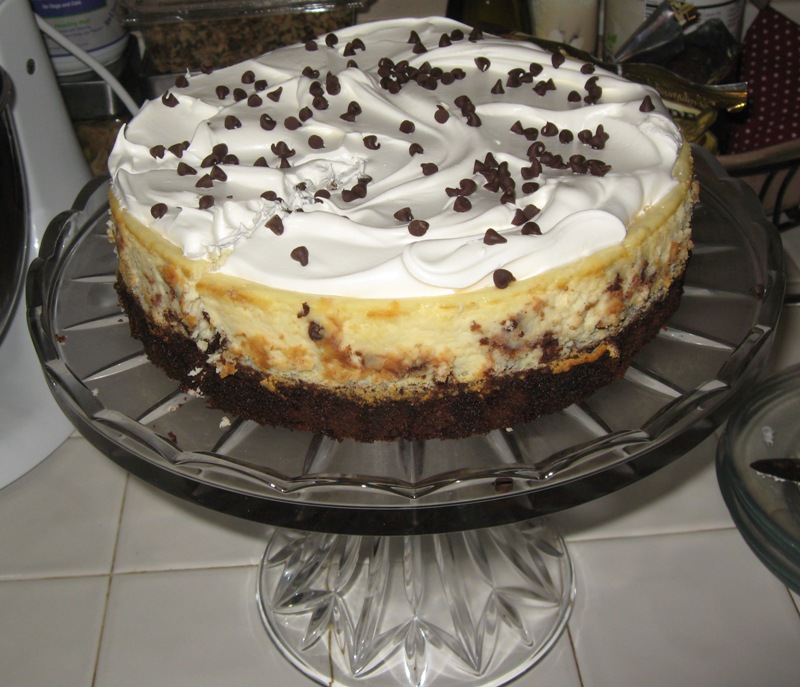 I made Brownie Bottom Chocolate Chip Cheesecake