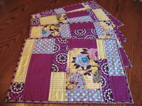 Here’s a set that my SewMod friend Andrea made up with some of the Bespoken fabrics. Check out her Funky Placemats Flickr page. She’s made several cool ones!