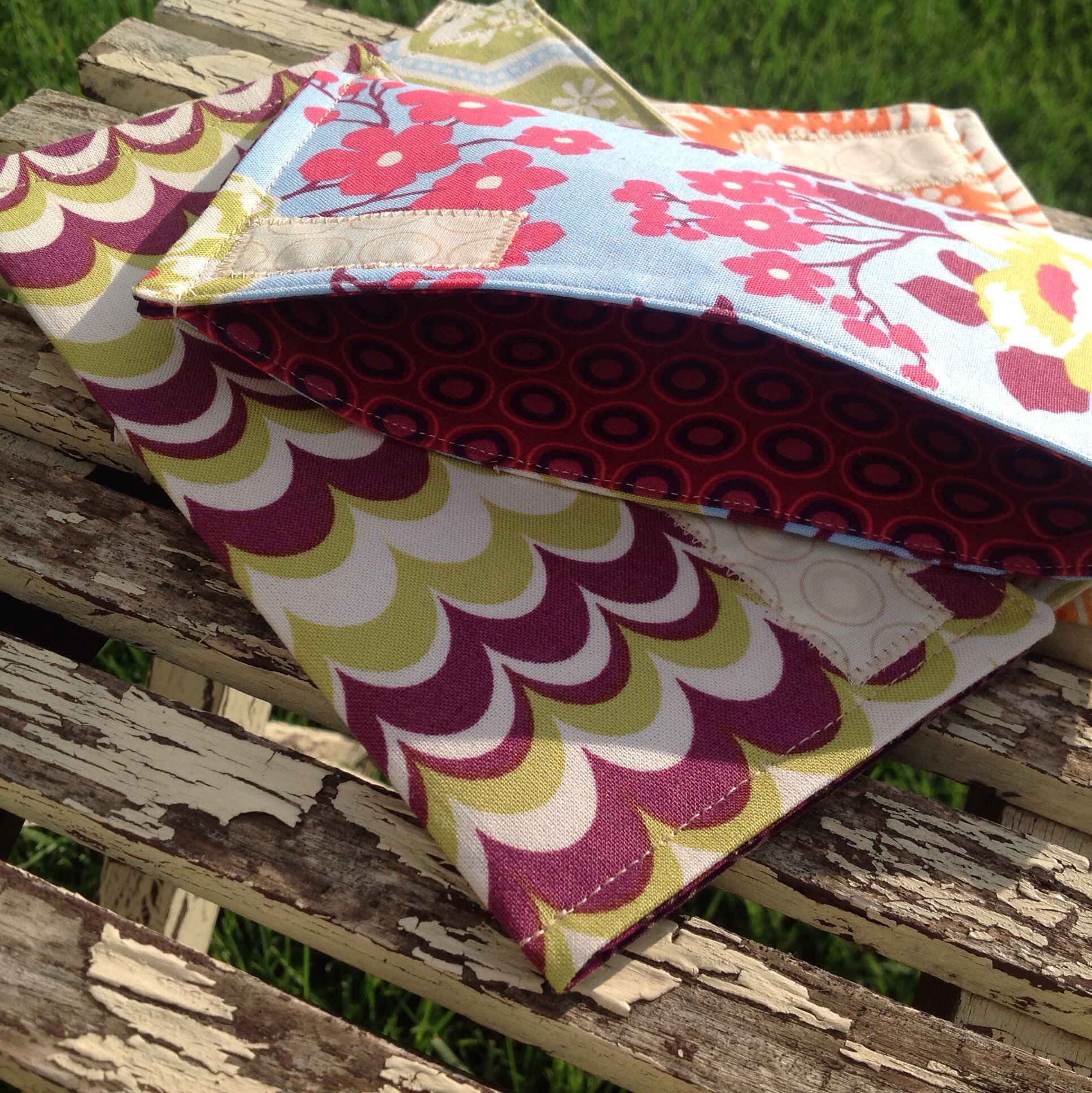 Mine was inspired by a tutorial found here. I added fusible interfacing to all the parts and didn’t bind mine but instead turned in the sides and top stitched.