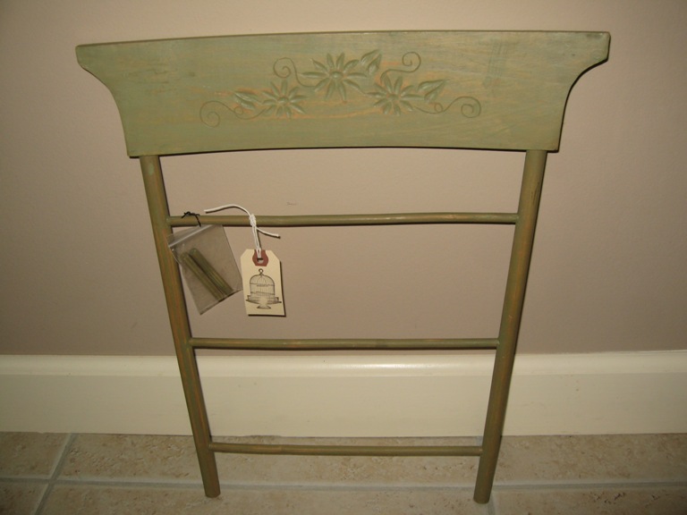 And lastly, my cutest find is these children’s chair backs, which were taken off the seat and had holes drilled into the backs so that they could be “propped” against the wall and things hung from them.