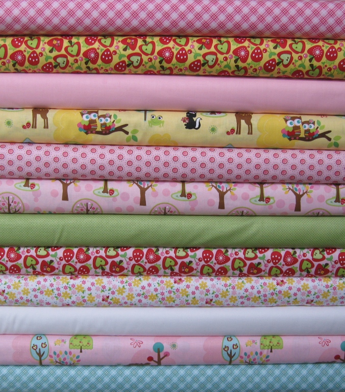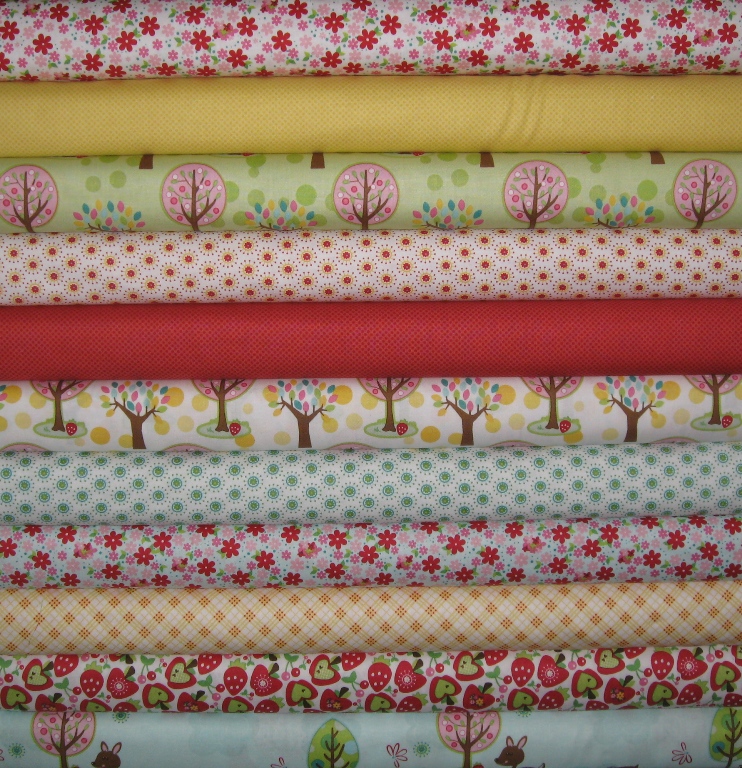The full order, all 23 bolts in this collection, arrived yesterday. It has 4 main colors to it…blues , greens, yellows and pinks, along with some plaids, daisies , and solids.
