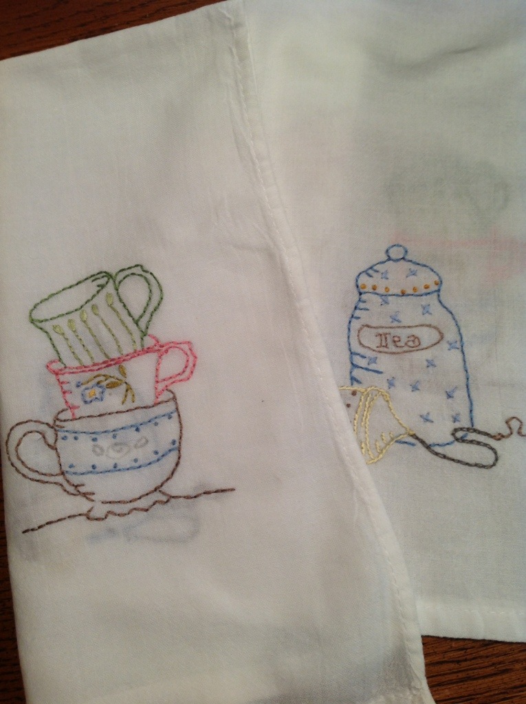 My mom always works on embroidery when she’s sittin’ around watching TV in the evenings. She’s made some really pretty tea towels lately.