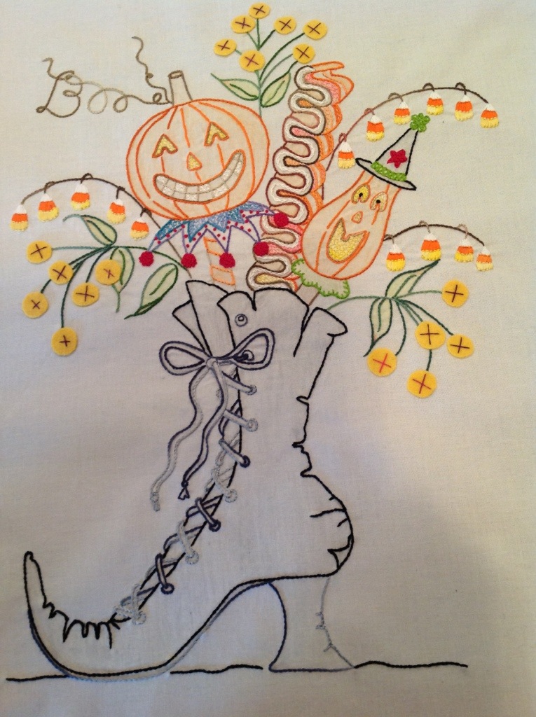 I finally finished that Which Witch’s Boot embroidery that I started quite some time ago for Paige. I think it turned out really well.