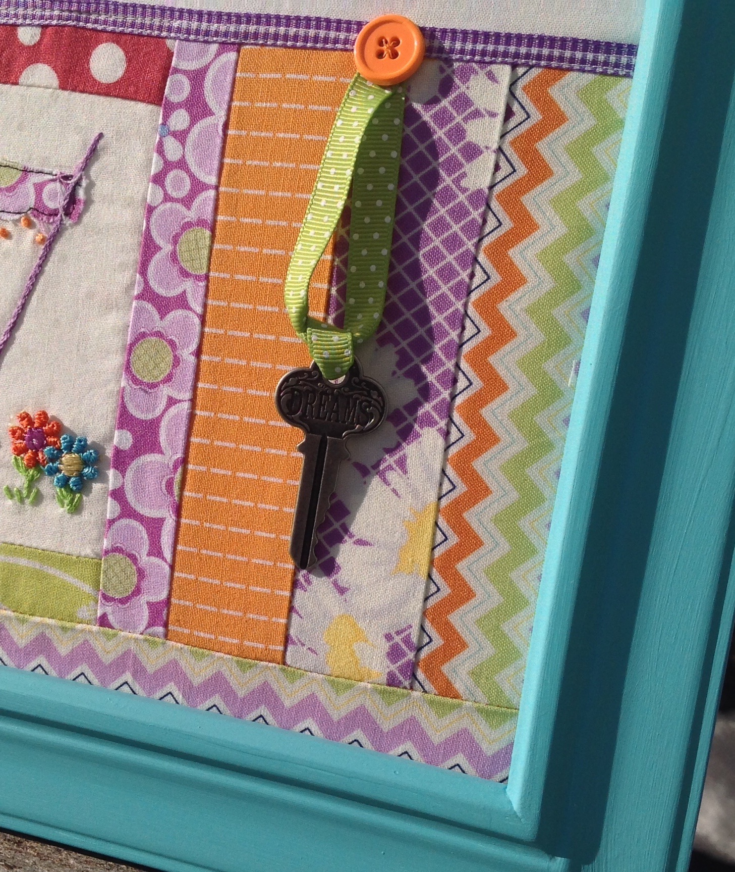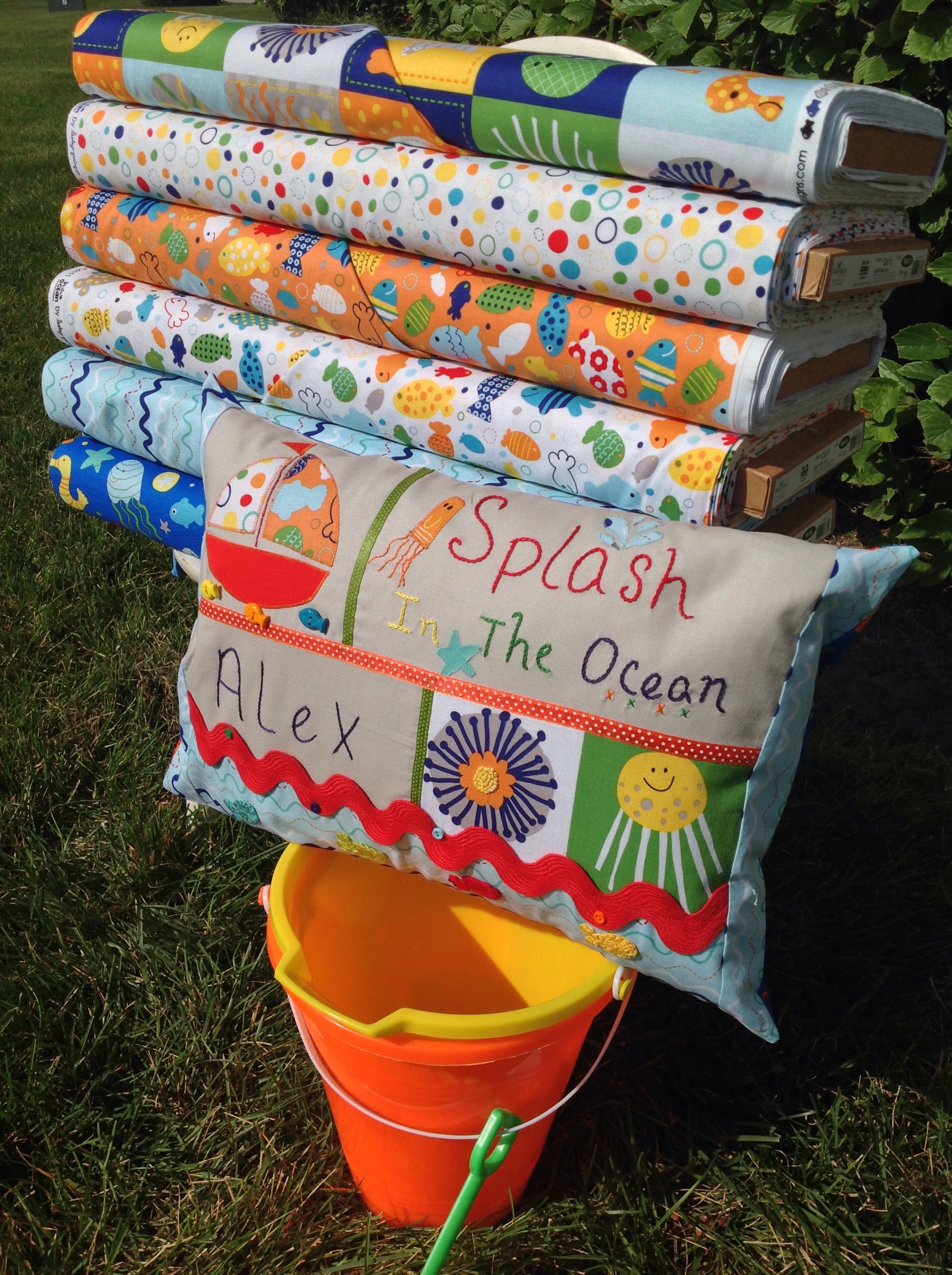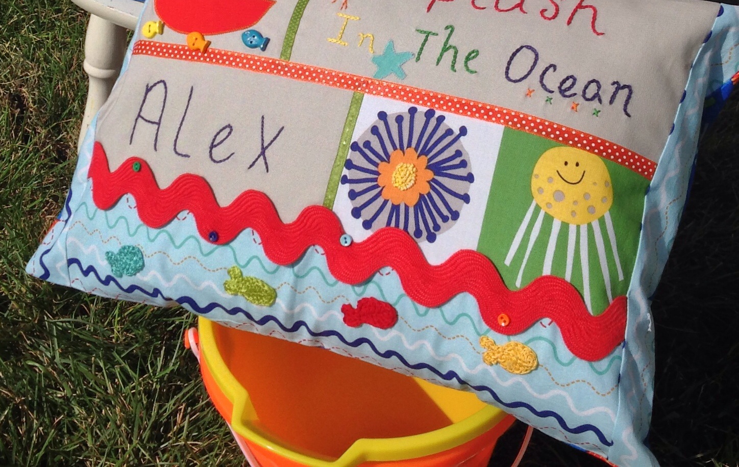 I like projects that I can embellish and use different techniques like appliqué & embroidery. A chain stitch for the Splash really made the words ‘pop’ and adding the accent French knots to the anemone gave that some extra dimension too.