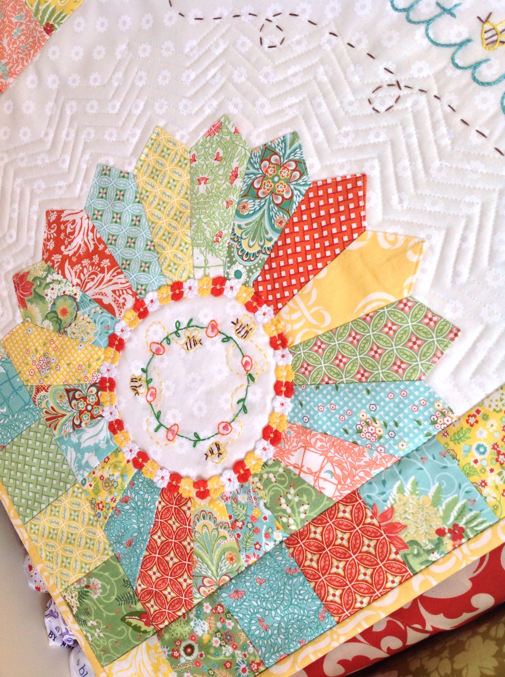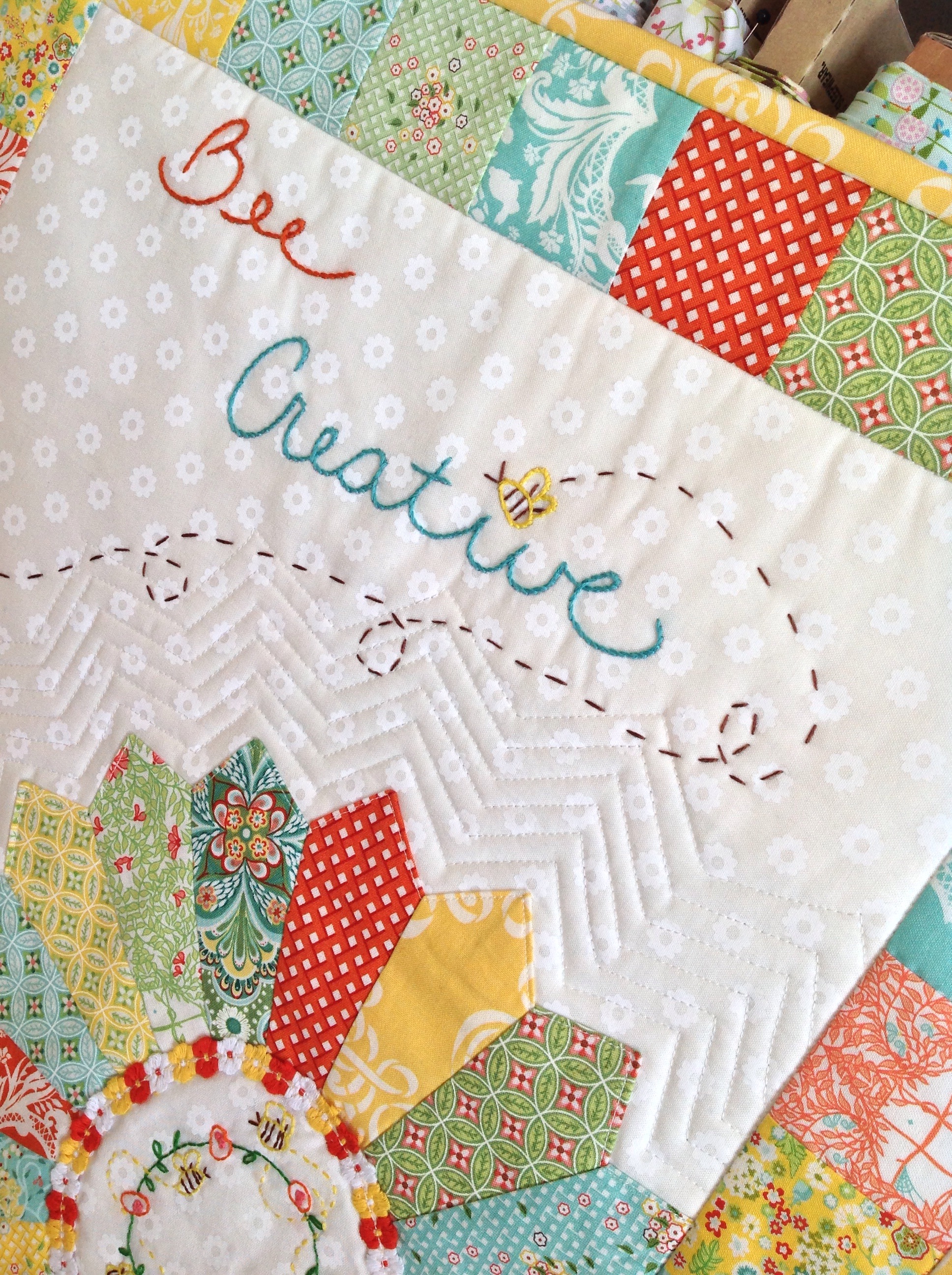 Buzz on over to Moda Bake Shop and quilt along with me and many, many others as we stitch up some of these adorable embroidery blocks from Pamela Morgan from My Sweet Little Stitches.