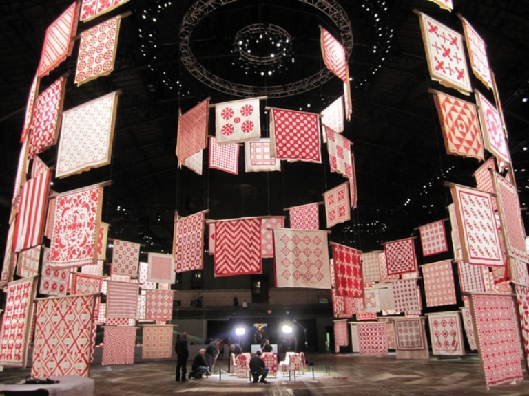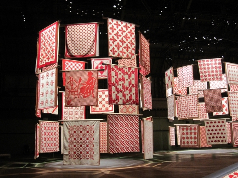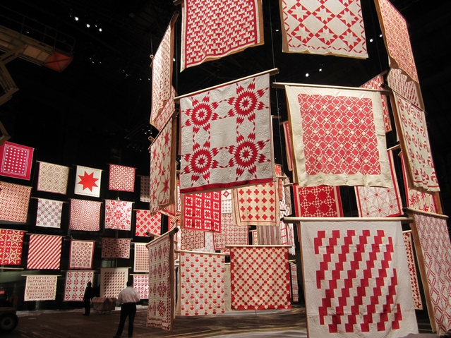 I came across this article in the Michael Miller blog and just had to share it with you if you haven’t seen it. The American Folk Art Museum has said that 2011 is the year of the quilt. To honor that, they hung 651 quilts, spiraling through the air at the Park Avenue Armory. The show was The Infinite Variety: Three Centuries of Red and White Quilts and was shown back in March of this year.