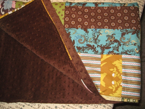 We named this one, Gypsy Road, and it is backed with a chocolate Minky and tied off. No quilting or binding!