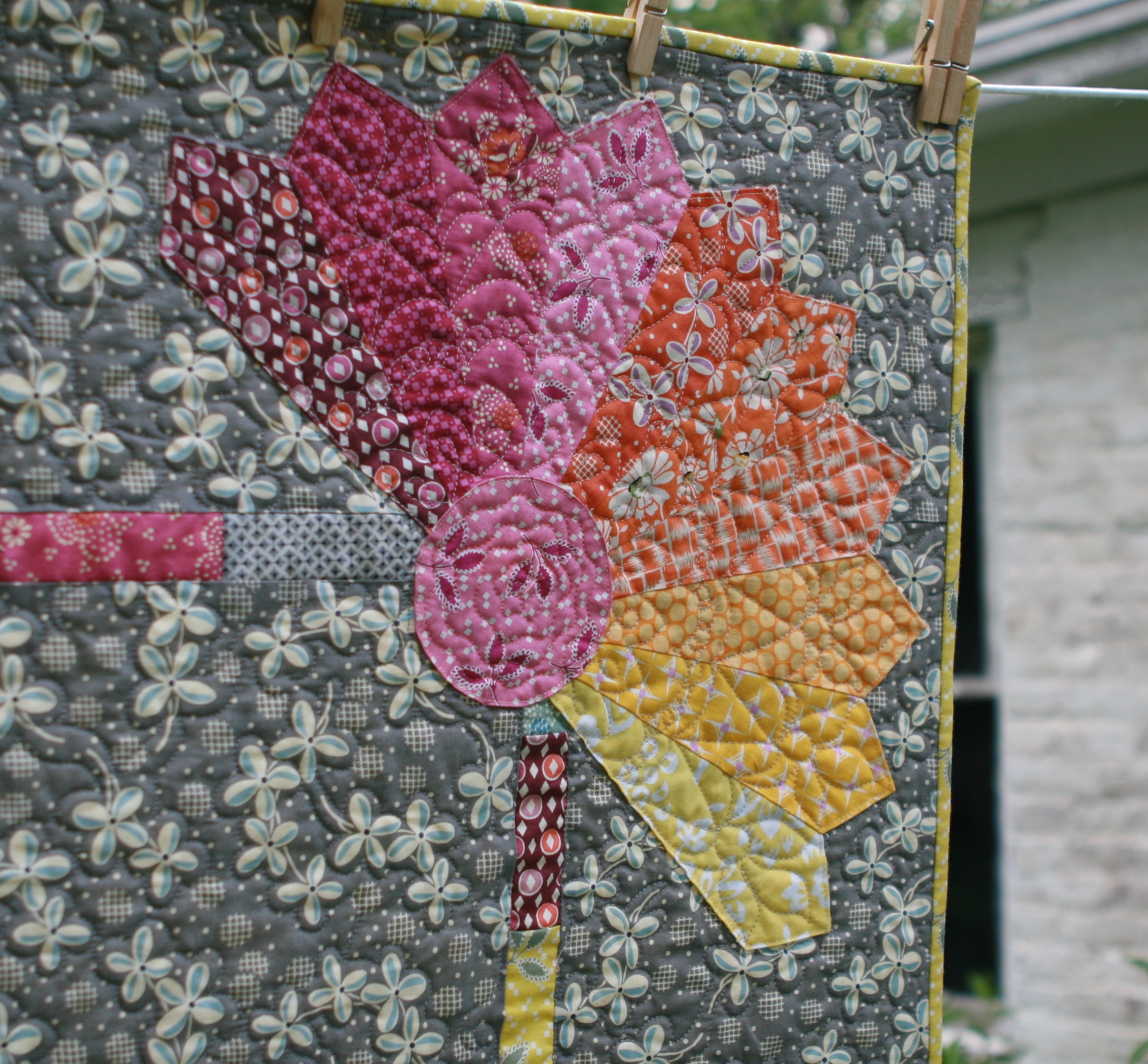 Isn’t the Midnight Garden Gate the perfect center! Lorrie requested a swirl pattern so I quilted each blade from the center outward to the tip.