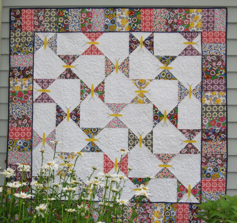 Wow, This butterfly quilt was worth waiting for,it is delightful ! This is so light ,bright and cheery with the anthology fabrics . The collaboration of Lorrie and Paige is a great success on this project !!!