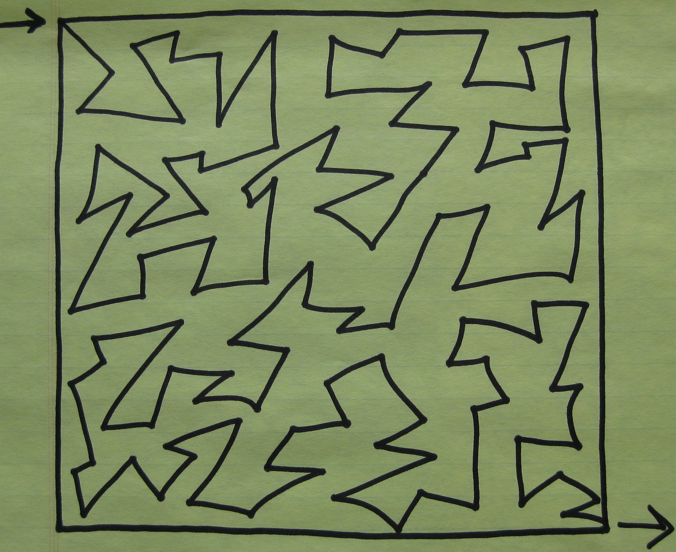 Square 2 – Start at any corner you are most comfortable I tend to work this pattern from top left to bottom right. Basically this is a swaying motion back and forth as you meander across the space. This pattern gives you the effect of a water if you follow my lines you will see how that works. I have used this design on a landscape panel with a pond -the water came alive. It can also be used in a sky to create a eerie stratus type cloud perfect in those Halloween panels!