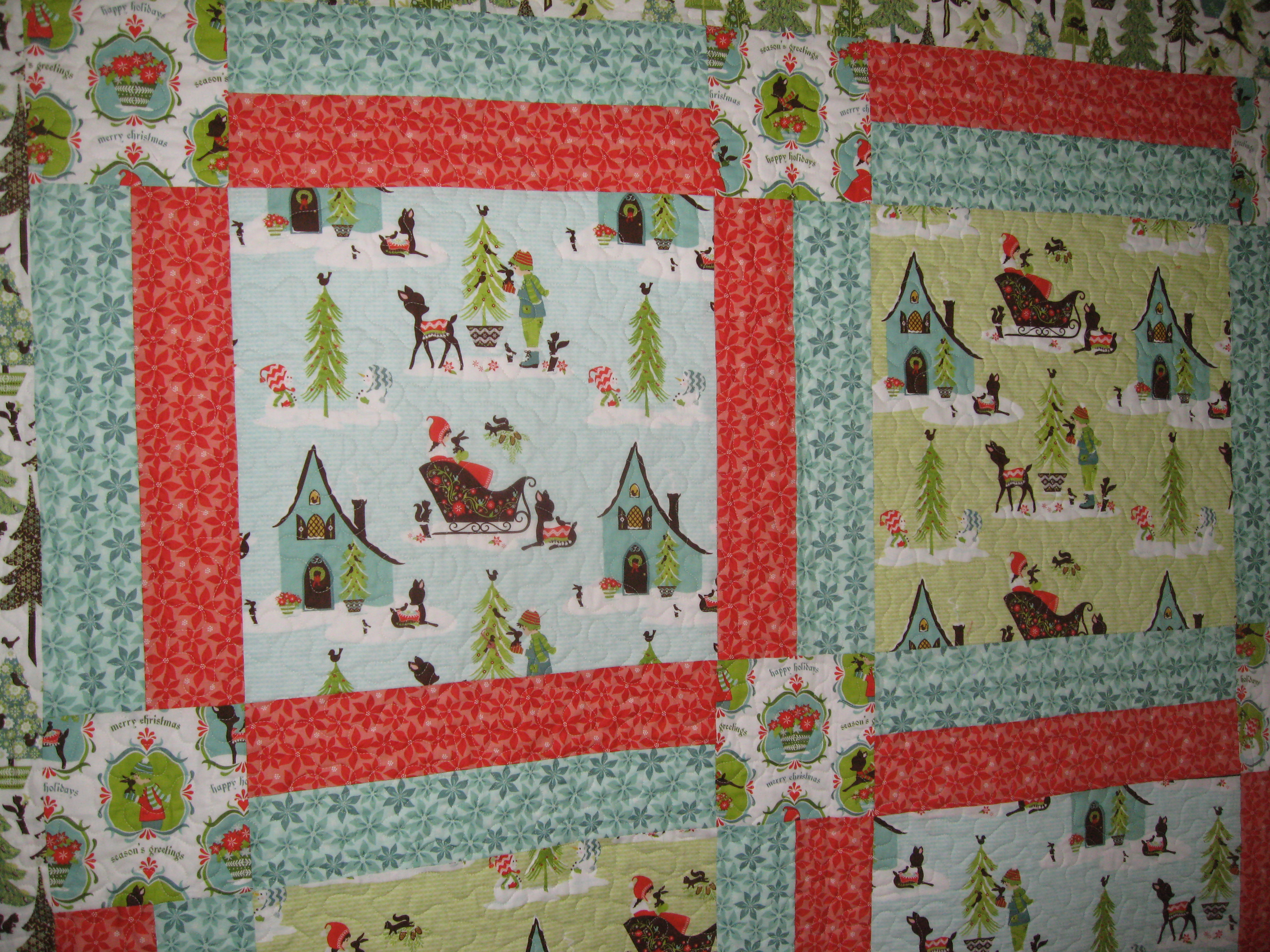 I added this cute Alpine Wonderland Christmas Quilt kit to Etsy yesterday. We used the Summer Tweets quilt pattern that Paige and I designed because it showcases large scale prints and the main fabrics in Alpine Wonderland are so darn cute I couldn’t bear to cut it up. Kit comes with the free pattern.