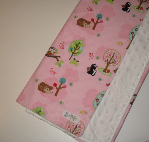 Last is the Hoo Blankie. It has a Minkie backing for the cuddly, snuggle factor and a yard of fabric for the front. Easy, breezy blankie and it comes with a free pattern.