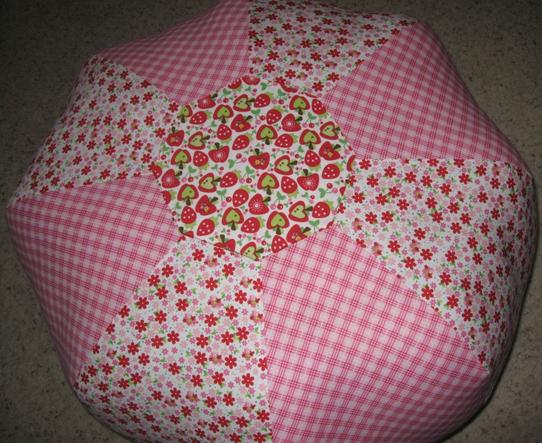 But, I have managed to make some more gumdrops:) We had a couple of custom orders last week. This one is a large gumdrop made from the Hoo line. Alternating pink plaid and sweet flowers with the strawberries on top. So cute!