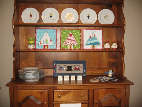 And they even look great as mini quilts for my hutch decorations!