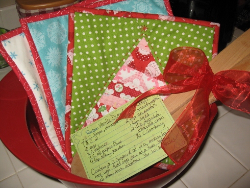 Add some wooden spoons, mixing bowl, and your favorite cookie recipe with these hot pads for a great gift!