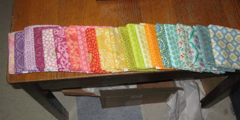 We did start a new quilt this past Sunday called Sassafras by Thimble Blossoms. It’s a new pattern we got into the shop last week. It takes a jelly roll but we decided to use some scraps and fat quarters with a lot of Kaffe fabrics. I’m very excited to see how this one turns out.
