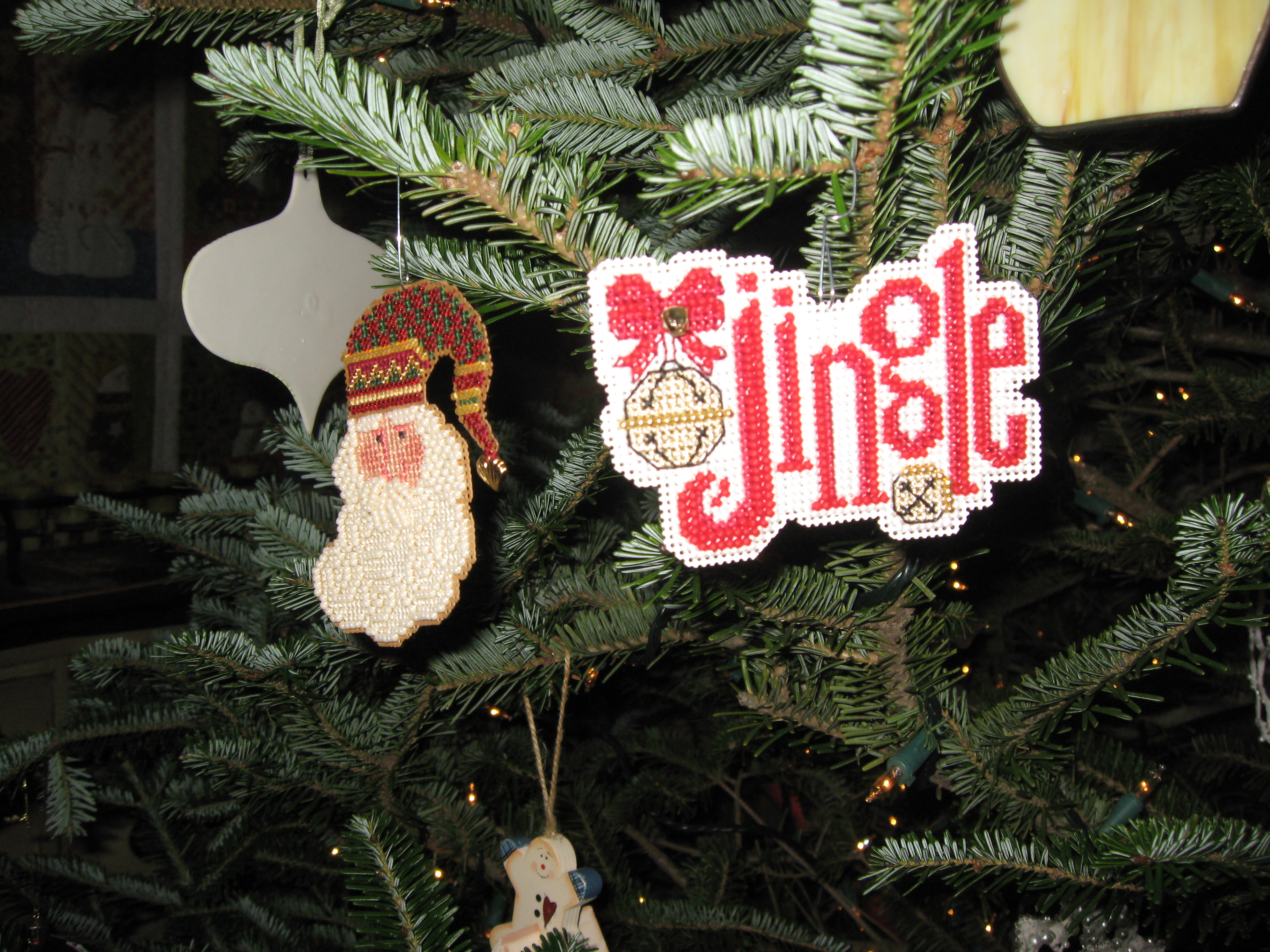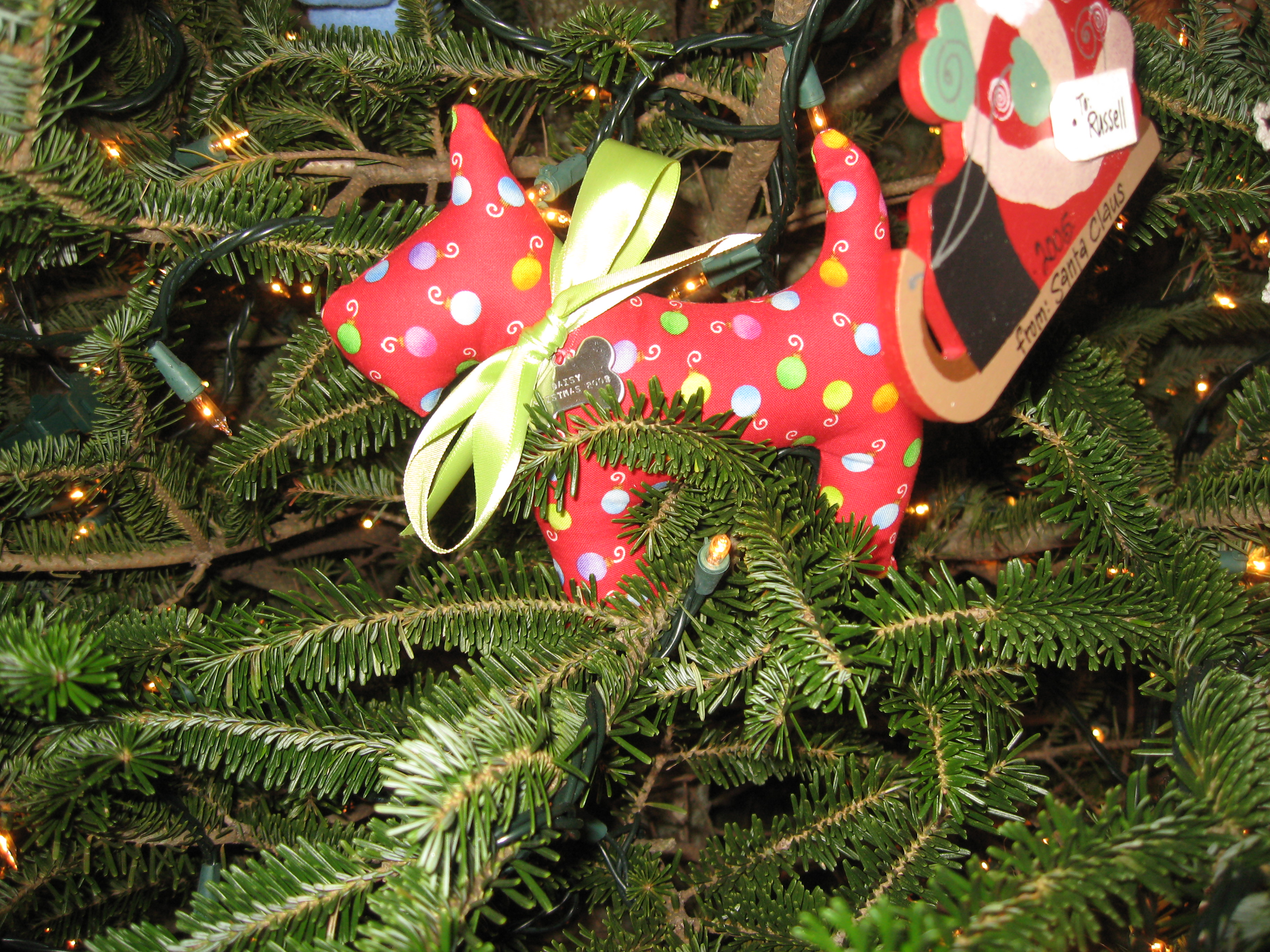 This is Daisy’s 1st Christmas ornament. I used Bunny Hill’s pattern “Allie Dogs” and had a dog tag made for its “collar”.