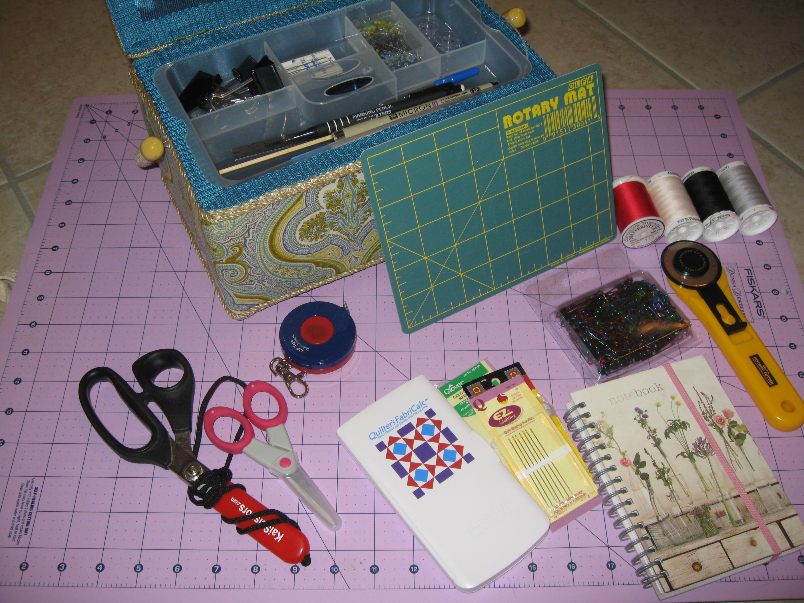 Every time I went to take a class at the LQS I would end up having to purchase something because I just didn’t have a complete kit put together for leaving the house. I can’t even begin to tell you how many red spools of thread I have because of this.