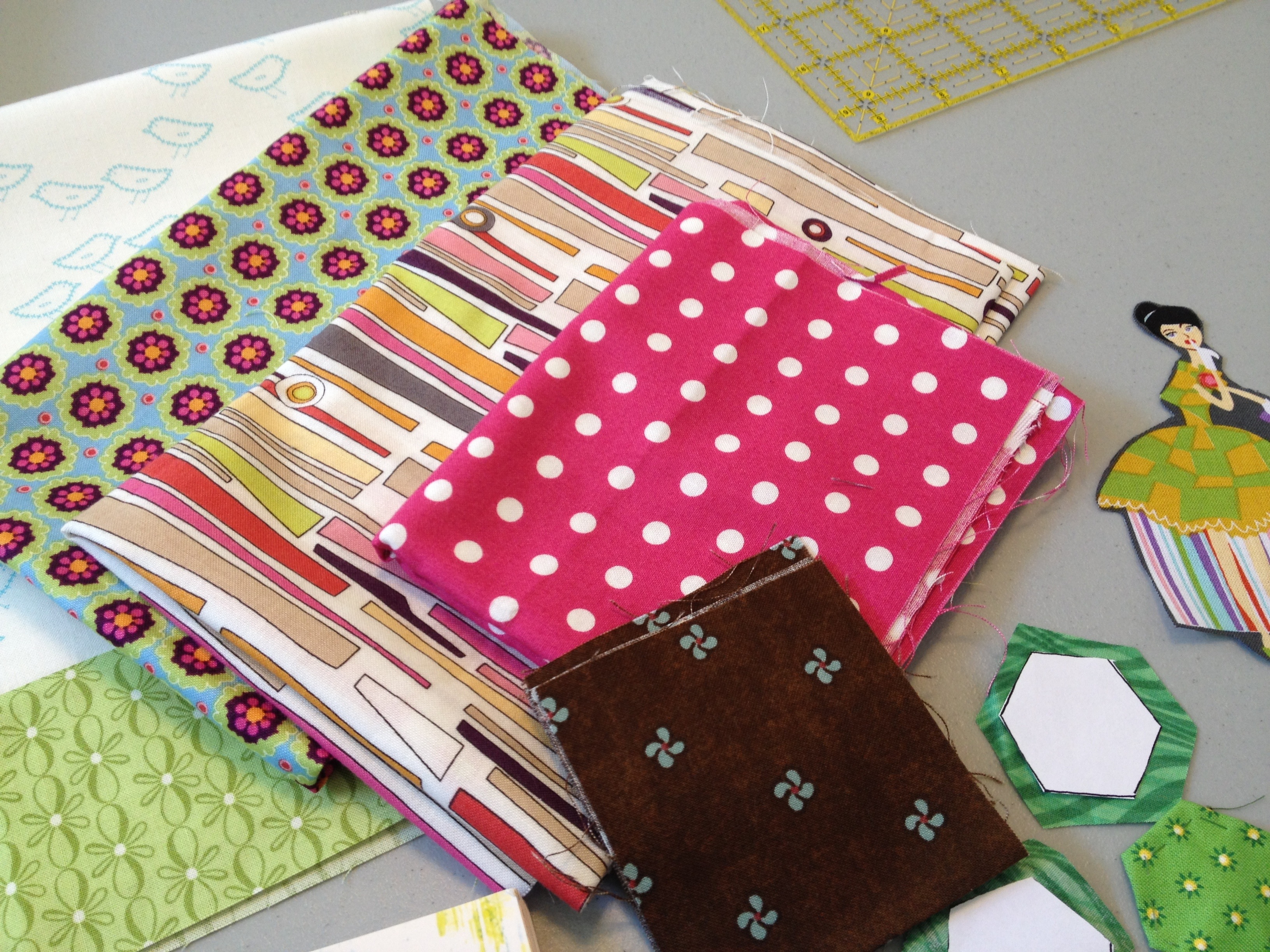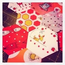 These are some of the 3/4″ hexies we’ve been working on for this project.
