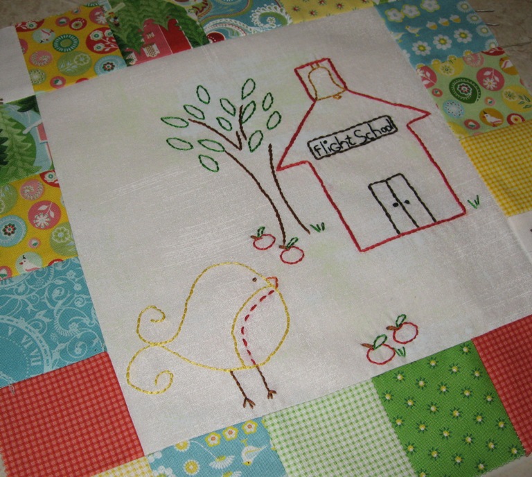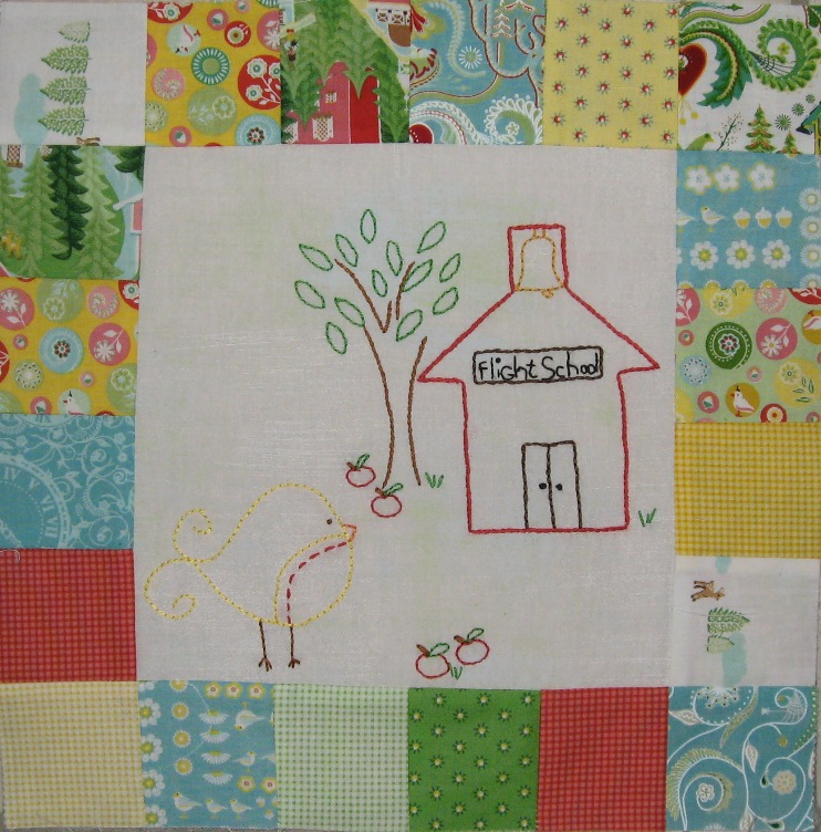 I finally finished the September block from Little Miss Shabby’s BOM. September to me is apple picking time and back to school. And what kind of school does a Birdie attend? Well, Flight School, of course!