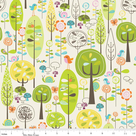 These 2 bolts are so cute. The Happier main has a whole scene going on if you look closely. Birds, butterflies, caterpillars. I just knew when this arrived that I had to embroidery something. I immediately thought how nice it would be to ride my bike along this fabric, so I jotted down some ideas and used the tree and critters as inspiration.
