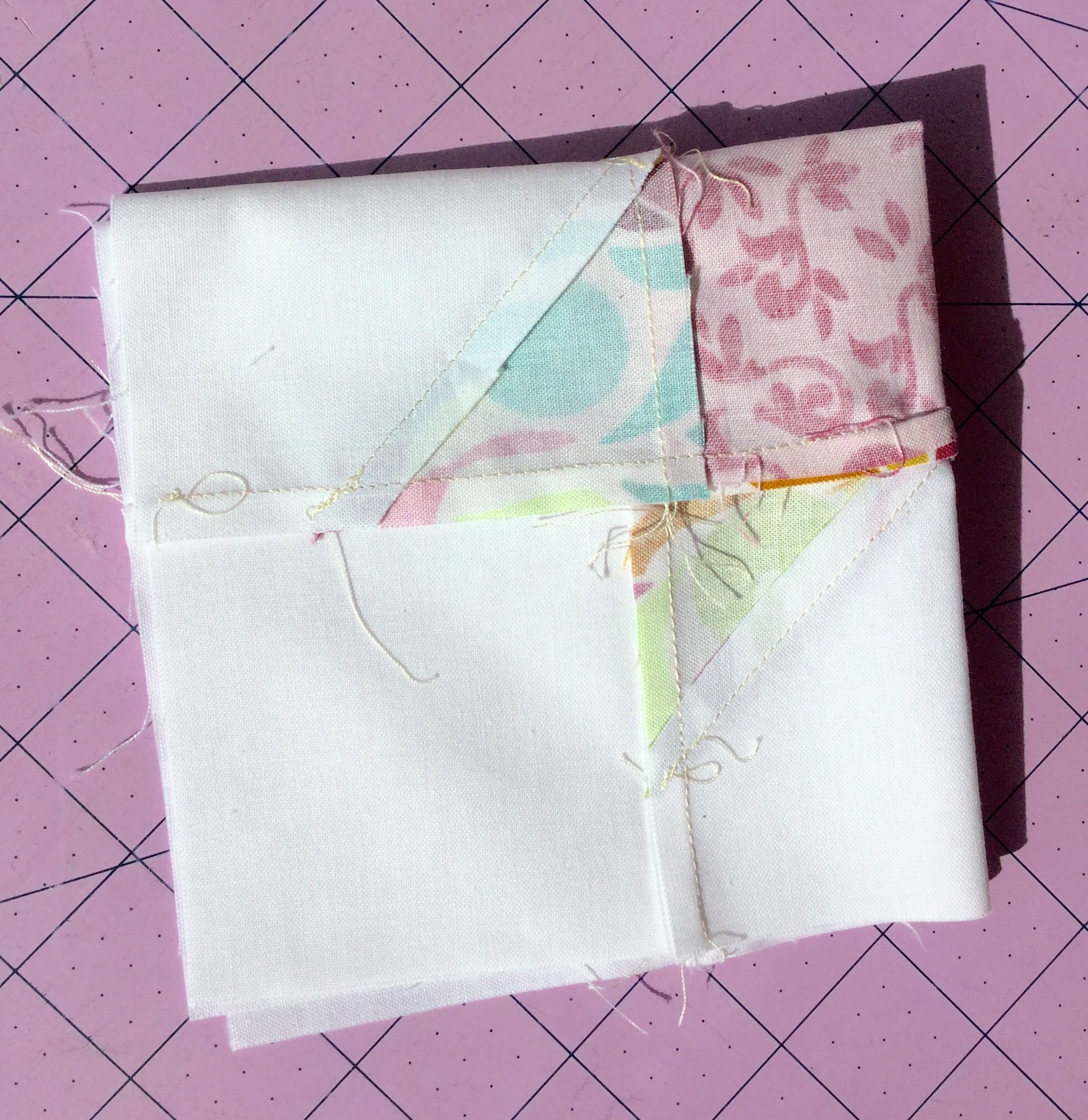 Trim the block using your rotary cutter and ruler to the 9-1/2″ square.