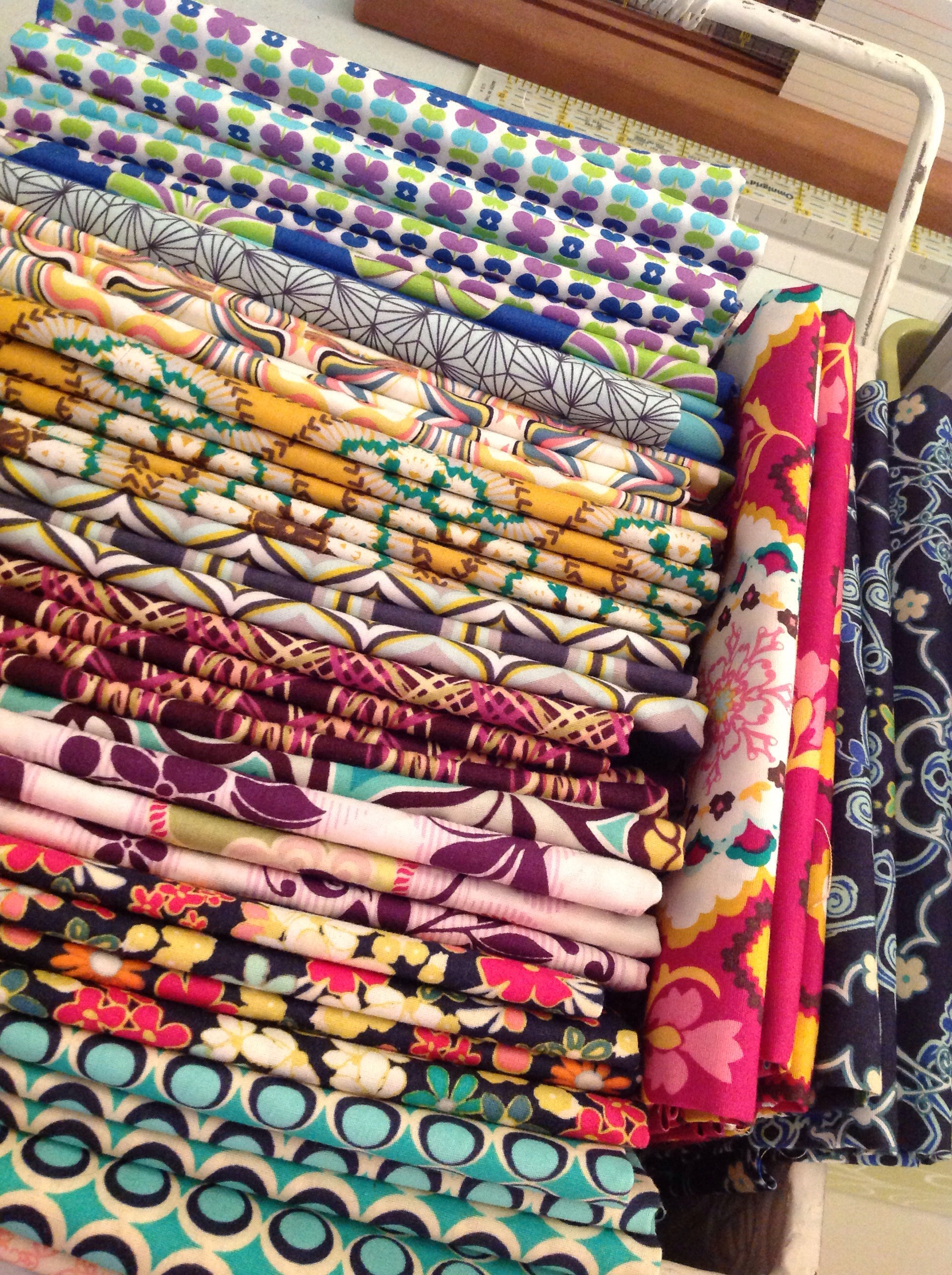 And Paige managed to work her mad skills creating some more SewMod Stacks while we were there. You can find these and many more in the Etsy shop. I added about 12 new sets the other day. The SewMod Stacks pull from different fabric companies & different lines to mix & match. We like to show quilters that you can jump out of that pre-made bundle and mix it up. It’s ok to do your own thing! The SewMod Stacks tend to sell pretty fast. We offer them at a 15% discount.