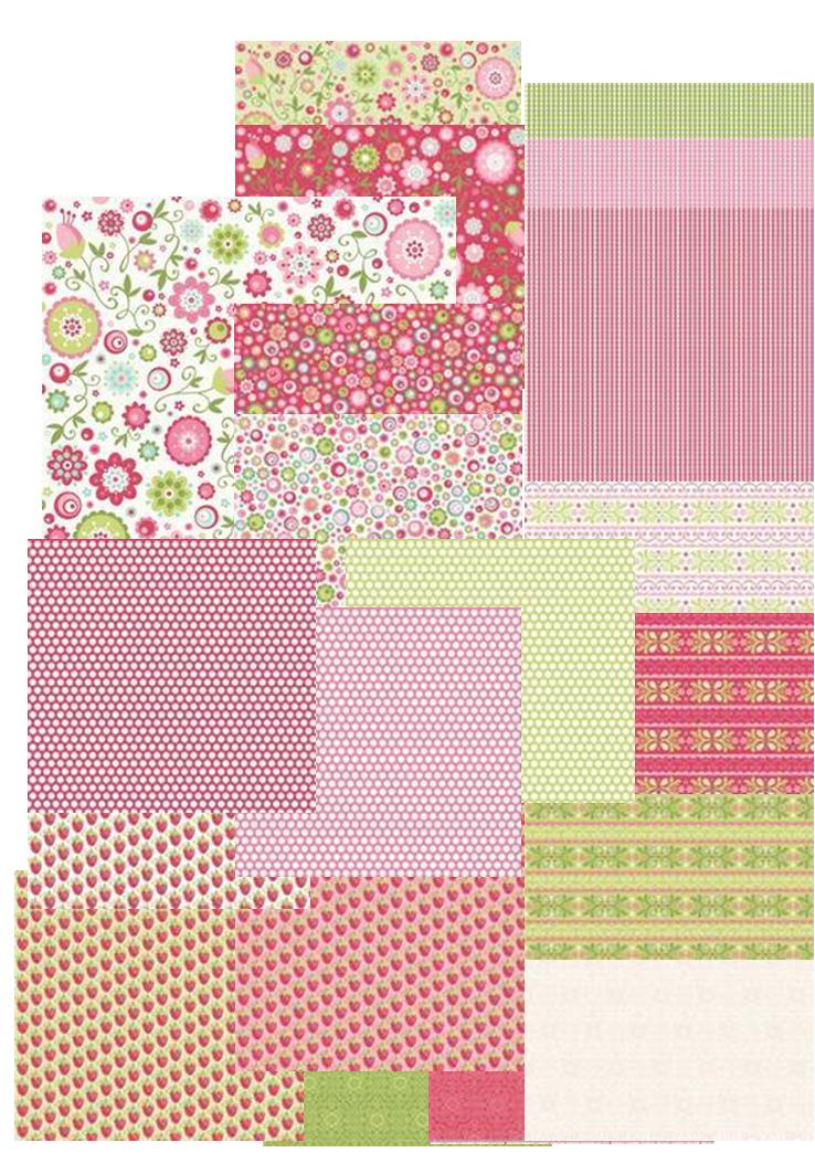 You must head over & visit www.rileyblakedesigns.com to see better pics of this line (still learning the ins and outs). The strawberries in this line are sooo cute! Don’t forget to check out the other lines available too. The website also offers free patterns and a link to their version of the Moda Bake Shop…Cutting Corners, which offers tutorials.